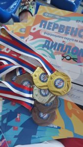 Две золотые медали завоевала Ворожейкина Таисия Александровна на дистанциях 800 и 1500 м вольным стилем и Сорока Алина на дистанции 50 м брасс (воспитанницы тренера-преподавателя И.Н. Шубиной).
