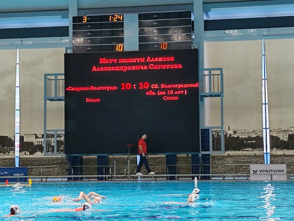 Сегодня в плавательном бассейне ГАУ ДО ВО «»СШОР по водным видам спорта « Спартак-Волгоград» прошел матч по водному поло среди команд Сборной Волгоградской области (юноши до 15 лет) и женской командой «Спартак-Волгоград» посвящённый памяти Алексея Сигитова, прекрасного человека и тренера , героически погибшего на СВО. Матч закончился со счетом 16-14 в пользу команды «Спартак-Волгоград». Лучшими игроками матча были признаны Наталья Бронникова и Мирослав Жуков.
