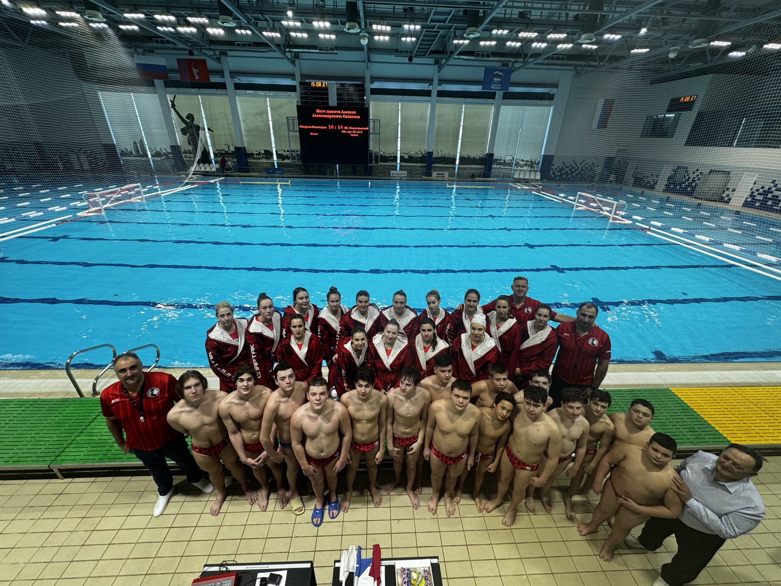 Сегодня в плавательном бассейне ГАУ ДО ВО «»СШОР по водным видам спорта « Спартак-Волгоград» прошел матч по водному поло среди команд Сборной Волгоградской области (юноши до 15 лет) и женской командой «Спартак-Волгоград» посвящённый памяти Алексея Сигитова, прекрасного человека и тренера , героически погибшего на СВО. Матч закончился со счетом 16-14 в пользу команды «Спартак-Волгоград». Лучшими игроками матча были признаны Наталья Бронникова и Мирослав Жуков.
